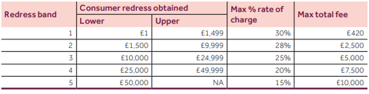 As a quick primer, this means there will now be five redress bands with a maximum fee charged per band.